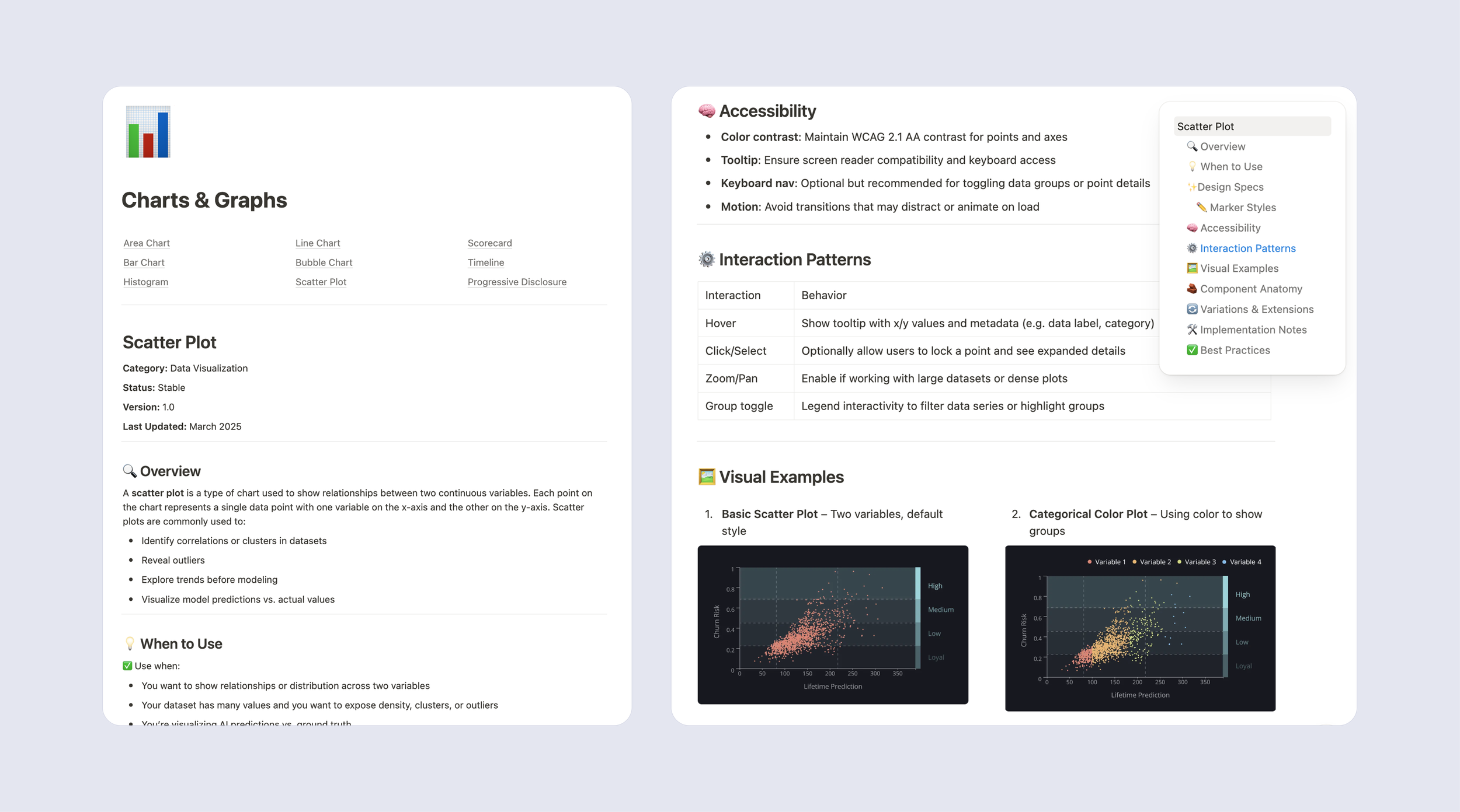 Documentation of chart types, usage, accessibility and pattern on Notion