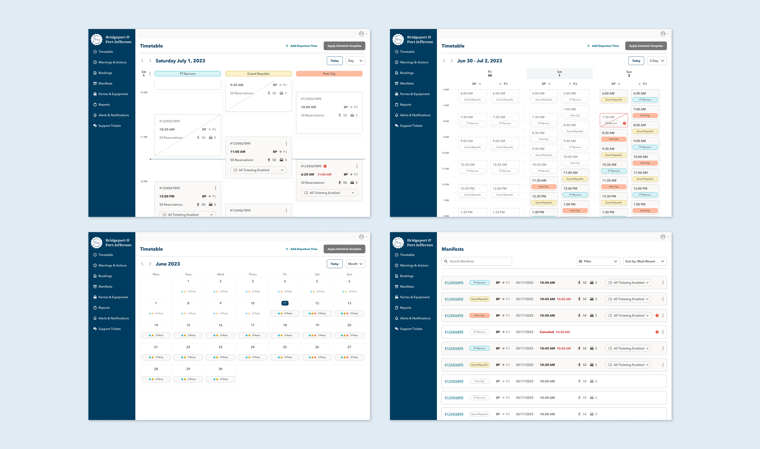 To support the end-to-end ferry booking experience, we worked with ferry staff and operations to design an internal operations console for admin users to manage customers and ferries. The goal was speed and clarity: to give staff a single place to monitor departures, manage tickets, voyages, manifests and schedule changes, and report maintenance or other issues. Key patterns included high scalability for time-sensitive work, filters and sorting, and guardrails and audit history so critical changes remain traceable.