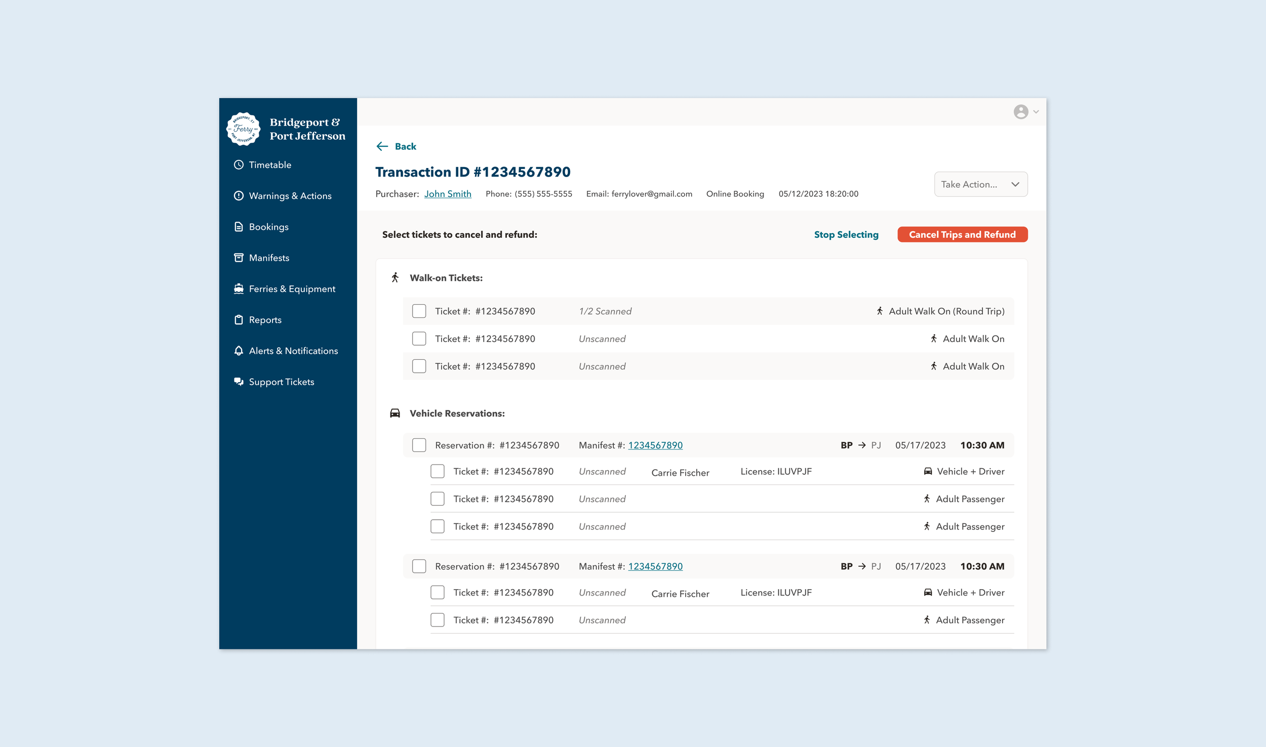 Built the admin side that keeps the customer experience running: manage schedules, manifests, and reservation issues in one place.