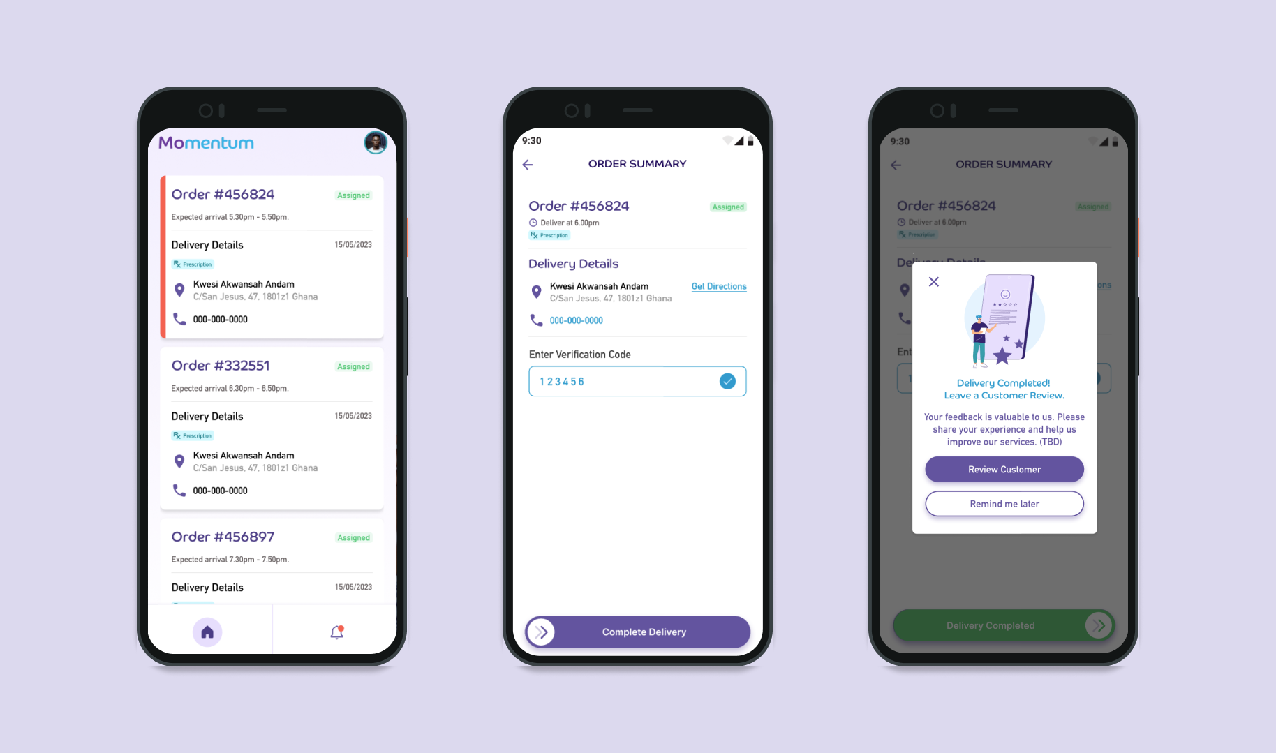 Momentum shipped as an Android MVP to the Ghanan market in 18 weeks. The product delivered the core pharmacy loop end-to-end: prescription uploads, on-demand ordering, subscription-based refills, account personalization, and pharmacist support designed to feel as trustworthy as an in-person pharmacy visit.